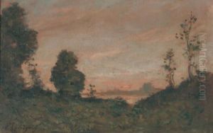 Landschaft In Der Nahe Von Saint-prive Bei Untergehender Sonne.