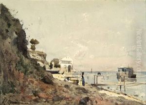 Porteuse D'eau A Capri [ ; Water Carrier At Capri ; Oil On Paper Laid Down On Canvas ; Signed. Bears Location And Date Capri 1850. Authenticated By Mrs Hellebranth. ]