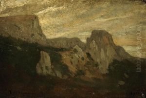 Un Paysage Avec Des Arbres Et Des Rochers Au Premier Plan