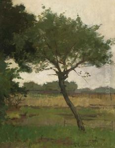 Personnage Dans Un Champ, Un Arbre Au Premier Plan