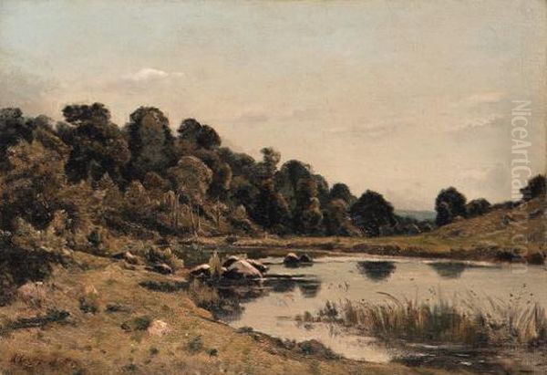 Les Bords De L'aumance Oil Painting by Henri-Joseph Harpignies