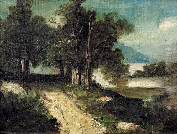 "chemin Parmi Les Chenes Dominant Un Lac".