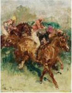 Palfrenier Conduisant Des Chevaux A La Fontaine
