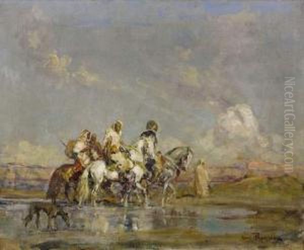 Cavaliers Arabes Traversant Un Gue