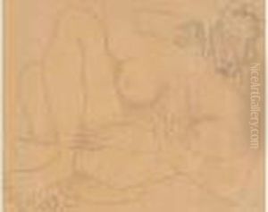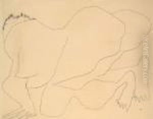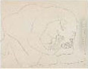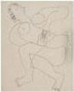 Crayon Gris Sur Papier Signe Du Monogramme En Bas A Droite.