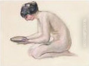 Jeune Femme Nu Assise Dans Un Fauteuil En Rotin
