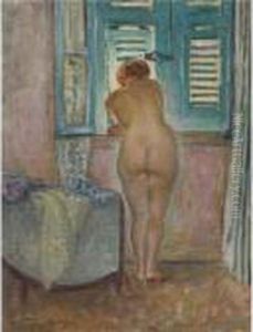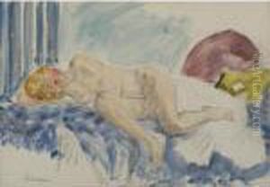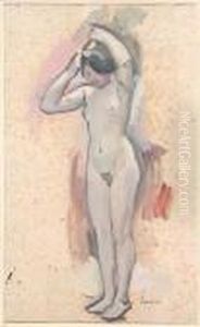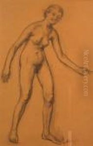 Promenade Sur L'eau. Dessin A L'encre Dechine Sur Papier, Signe En Bas A Droite.