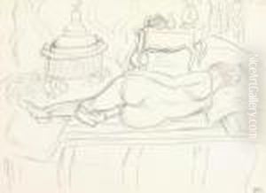 Nu Allonge, Les Jambes Repliees, Avec Un Collier
