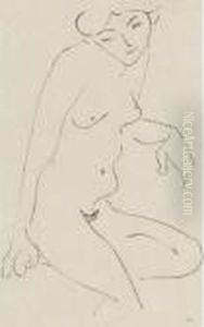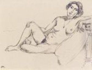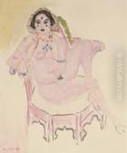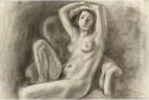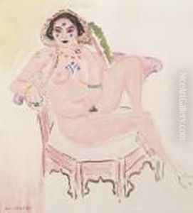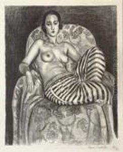 Nu Accroupi Sur Banquette Rayee