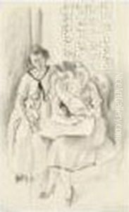 La Lecture (deux Fillettes, Bouquet De Pivoines Sur Fond Noir)
