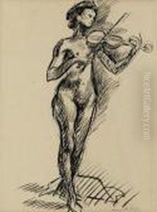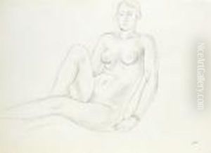 Nu Assis, Le Torse Appuye Sur Les Genoux