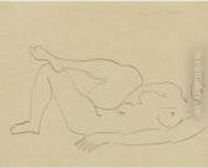 Nu Couche Au Visage Incomplet - Etude De Jambes