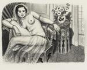 Nu Assis Dans Un Fauteuil Au Decor Fleuri (d. 445)
