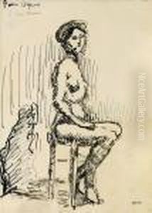 Jeune Fille Nue, Assise Sur Un Tabouret