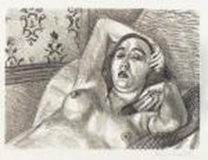 Nu Couche Au Visage Incomplet--etude De Jambes