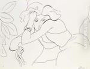 Jeune Fille Accoudee Au Paravent Fleuri (d. 439)