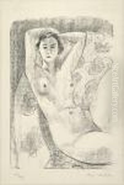 Nu Assis Dans Un Fauteuil Au Decor Fleuri.