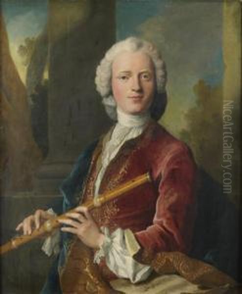Portrait De Gentilhomme Jouant De La Flute Traversiere