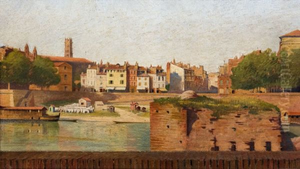 Study of the banks of the Garonne with the stack of the old covered bridge of the Daurade