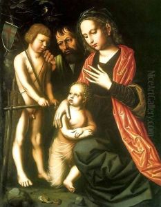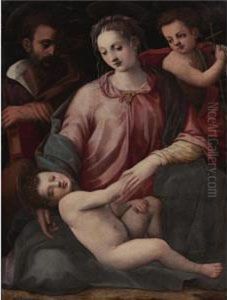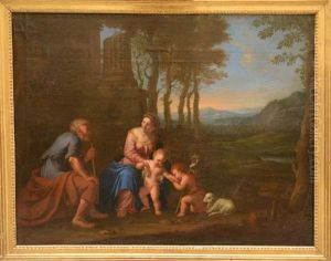 An Extensive Landscape With The Holy Family, Saints Anne And John The Baptist By Classical Ruins