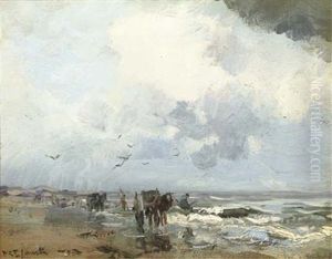 Pecheurs Et Leurs Barques Pres Du Rivage (+ Another Similar; 2 Works)