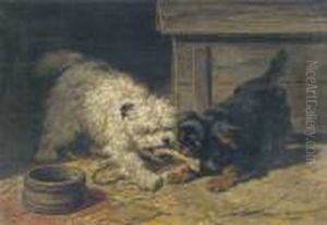 Zwei Hunde Mit Knochen Vor Ihrer Hutte