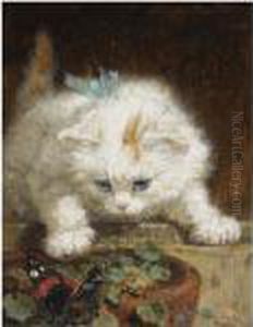 A Kitten Chasing A Butterfly
