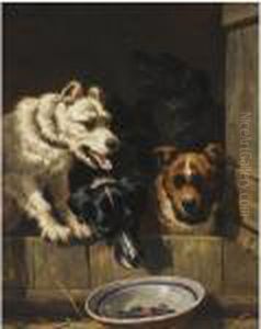 A Mother And Her Litter In A Castle Court Yard