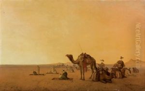 Orkenlandskab Med Kamel - Og Hesteryttere
