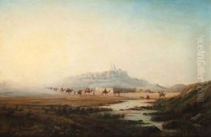 Okenlandskap Med Beduiner Oil Painting by Henrik August Ankarcrona