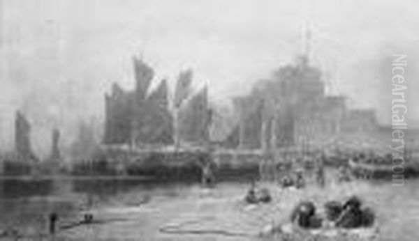 Unloading The Day's Catch Before Ambleteuse Castle, Normandy