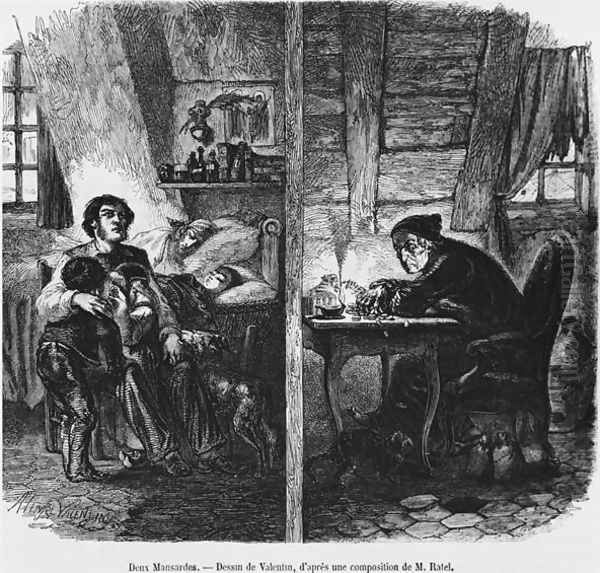 Two garrets, illustration from Le Magasin Pittoresque, Paris, 1855
