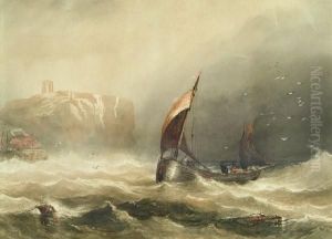Sailingships In A Stormy Sea Watercolour 16 X 23cm