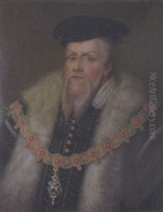 William Russell, 1st Baron Russell Of Thornhaugh (c.1558-1613), Wearing Black Doublet Slashed To Reveal Embroidered White Chemise, Clustered Pearl Buttons...