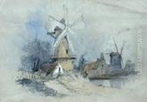 A Drover And Cattle In Front Of A Windmill