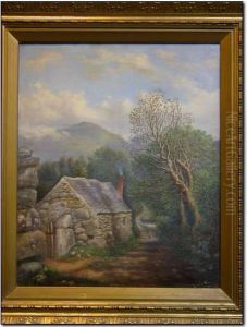 A Welsh Landscape With Figures, Cattle And Sheep Before Acottage