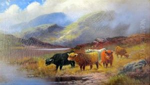 Highland Cattle Watering (+ Highland Cattle At The Waters Edge; Pair)