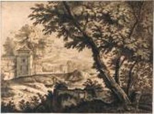 Portrait Of Young Woman In A Country Landscape With Flowers On Her Lap, A Ruined Wall Beyond