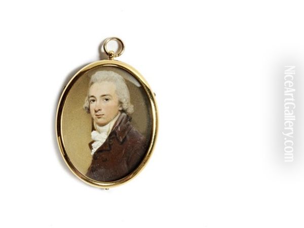 A Portrait Of A Gentleman, Wearing Brown Double-breasted Coat, Cream Waistcoat, White Frilled Chemise, Stock And Cravat, His Hair Powdered And Tied With Black Ribbon