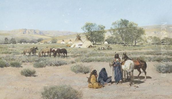 Bring the timeless beauty of Henry Farny's Indian Encampment into your home with a handmade oil painting reproduction. Carefully recreated on canvas by skilled artists using traditional techniques, this piece captures the delicate brushwork, subtle light, and vibrant color of the original masterpiece. With museum-level quality and rich texture, it brings elegance and artistic depth to any space. Enjoy free shipping and make this masterpiece a part of your personal collection.
