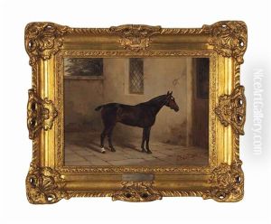 Switch, A Bay Hunter In A Loose-box (+ Copenhagen, A Dark Bay Hunter, 1892; Pair)