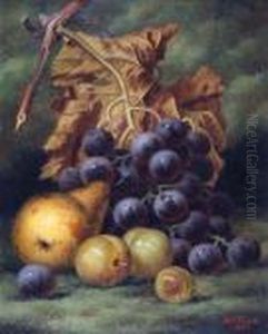 Still Life Of Pears And Grapes; Still Life Of Grapes And Plums