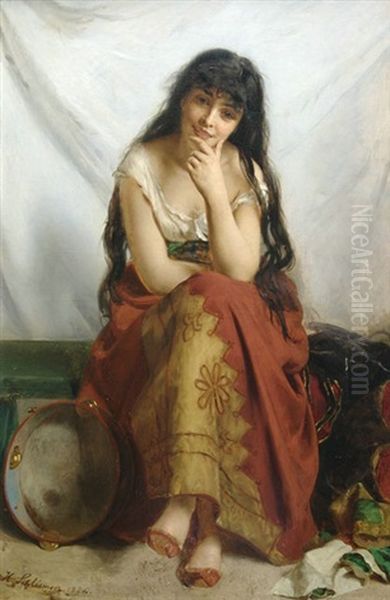 Bildnis Einer Junge Tanzerin Mit Tambourin Wahrend Einer Pause
