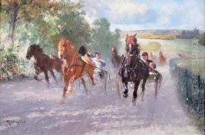 Bring the timeless beauty of Henry H. Cross's Chestnut Racehorse With Jockey Up On A Training Track With A Wooded Landscape Beyond into your home with a handmade oil painting reproduction. Carefully recreated on canvas by skilled artists using traditional techniques, this piece captures the delicate brushwork, subtle light, and vibrant color of the original masterpiece. With museum-level quality and rich texture, it brings elegance and artistic depth to any space. Enjoy free shipping and make this masterpiece a part of your personal collection.