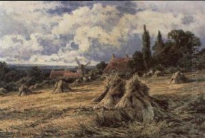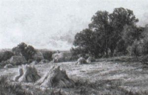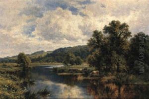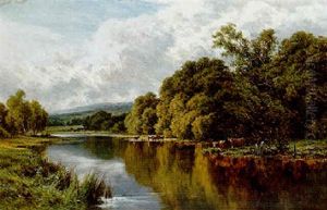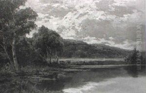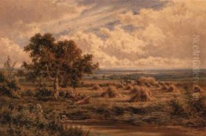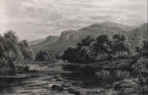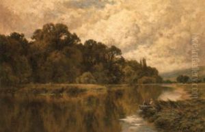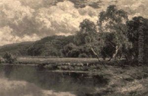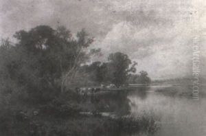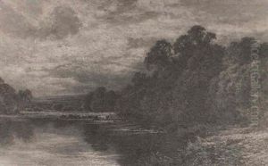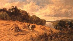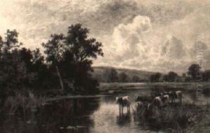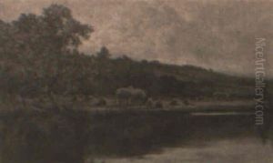 Figures And Cart Horses By A Stream At Dusk, Abinger, Surrey