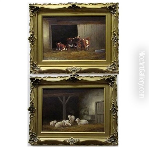 Barn Scenes With Sheep And Cows