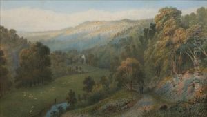 Shepherd And Sheep In A Woodland Landscape