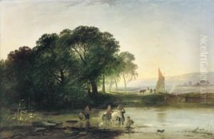 River Landscape With Figures And Dog By Eel Traps