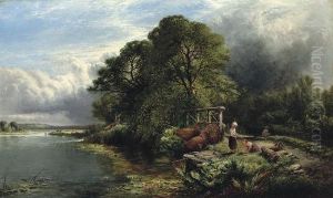 Figures At A Riverside Cottage With Cattle Watering