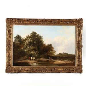 A Wooded Landscape With Cottage And Figures